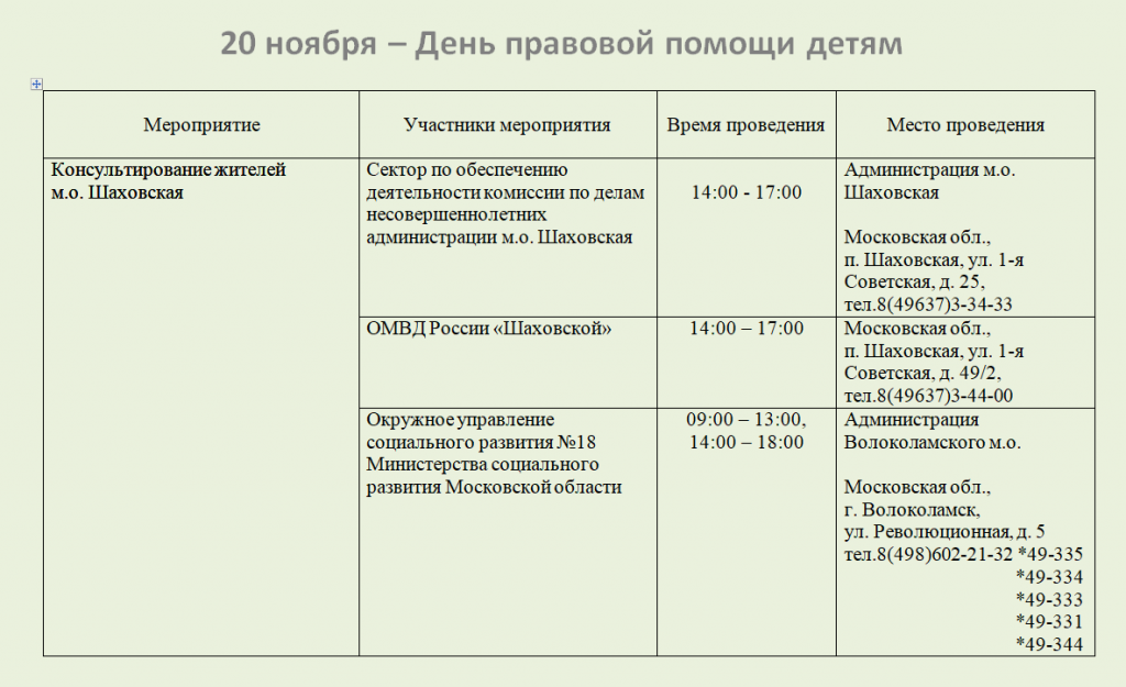 Сектор по обеспечению деятельности комиссии по делам несовершеннолетних администрации м.о. Шаховская (тел.8(49637)3-34-33);