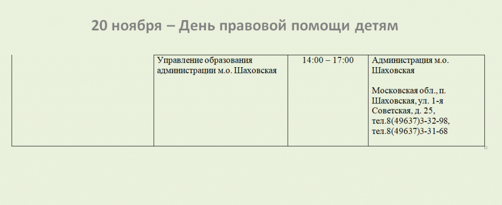 Управление образования администрации м.о. Шаховская (тел.8(49637)3-32-98,