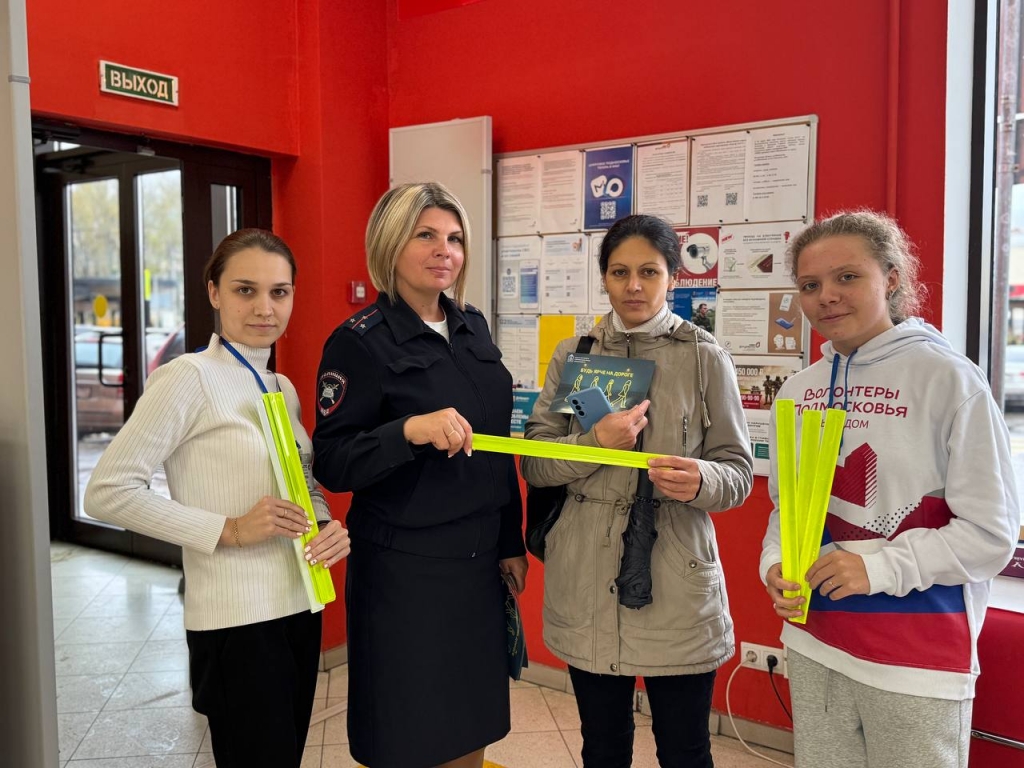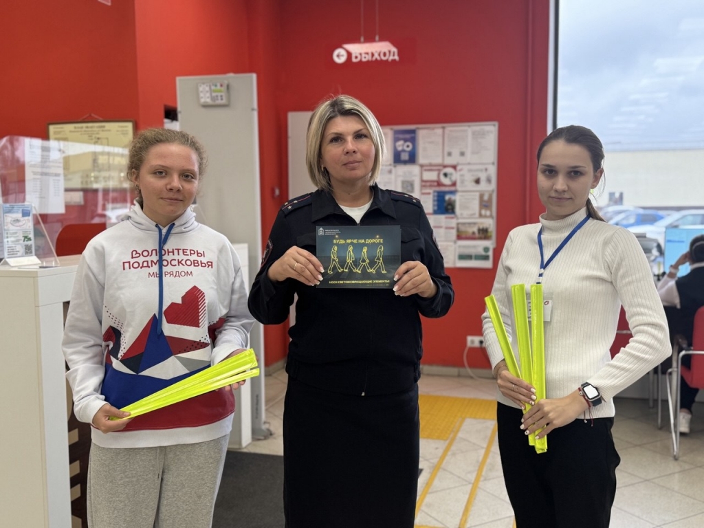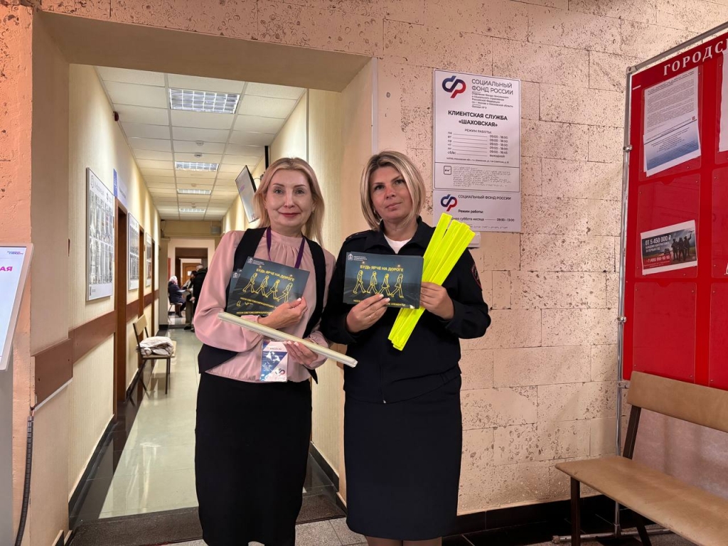 В рамках социального раунда по безопасности дорожного движения «Засветись» сотрудники Шаховской Госавтоинспекции вместе с волонтёрами Подмосковья провели профилактические беседы с посетителями и сотрудниками Многофункционального центра «Мои документы» и Социального фонда России в п. Шаховская. Автоинспекторы рассказали о дорожных ловушках, с которыми сталкивается пешеход в процессе участия в дорожном движении, объяснили важность использования световозвращающих элементов на одежде пешеходов в темное время суток и в условиях недостаточной видимости, рассказали о принципе их действия.