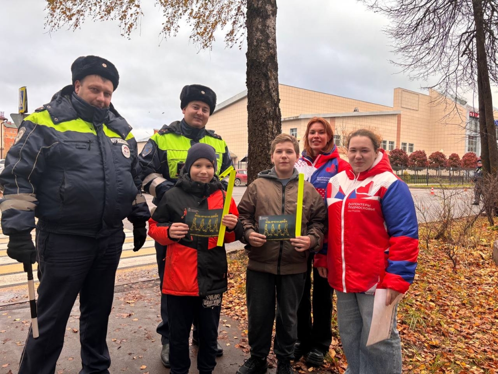 В рамках социального раунда «Засветись» автоинспекторы вместе с волонтерами Подмосковья в п. Шаховская провели разъяснительные беседы с юными участниками дорожного движения, в которых напомнили о необходимости соблюдения правил дорожной безопасности, о необходимости перехода проезжей части только по пешеходному переходу и использованию на верхней одежде световозвращающих элементов.