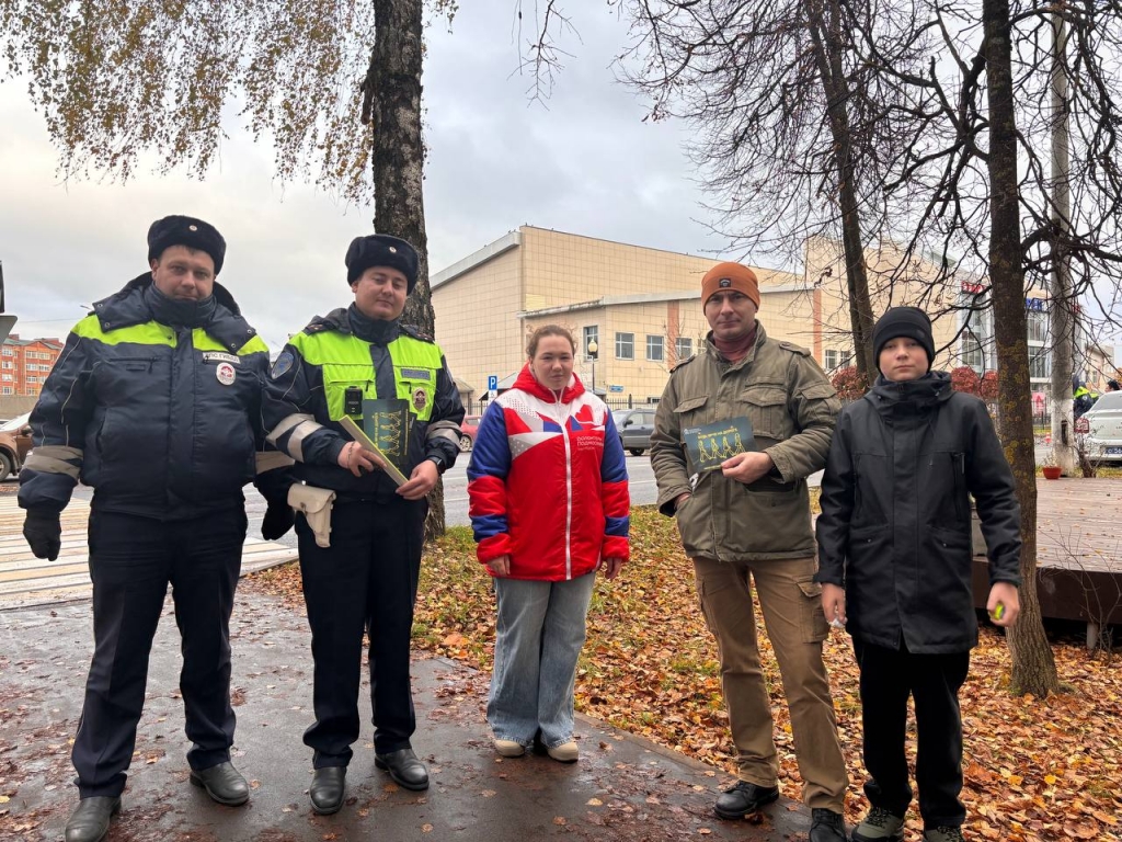 В ходе акции пешим участникам вручались тематические памятки и световозвращающие браслеты.