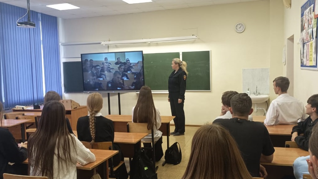 Сотрудник полиции рассказала старшеклассникам о специфике работы различных подразделений ОМВД, а также о наборе будущих студентов в учебные заведения МВД России на 2026 год. Инспектор довела до сведения будущих выпускников по каким предметам нужно будет сдавать единые государственные экзамены, какие испытания их ждут в выбранном учебном заведении. Проинформировала, что поступив в учебные заведения МВД, они будут обеспечены денежным довольствием, бесплатным медицинским обслуживанием, местом в общежитии и форменным обмундированием. После получения диплома молодым специалистам гарантировано трудоустройство в полиции.