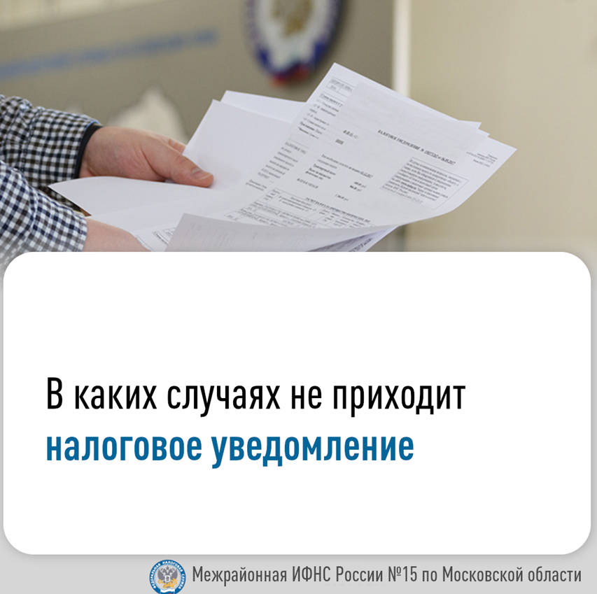 Межрайонная ИФНС России №15 по Московской области информирует, в каких случаях не приходит налоговое уведомление
