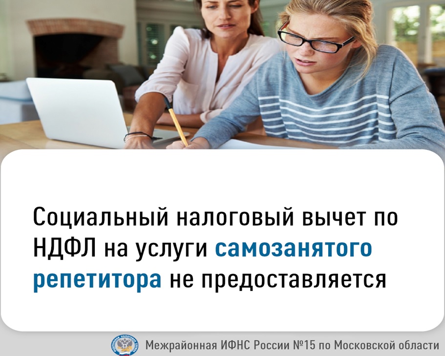 При оказании образовательных услуг самозанятым репетитором социальный налоговый вычет по налогу на доходы физических лиц (НДФЛ) не предоставляется.