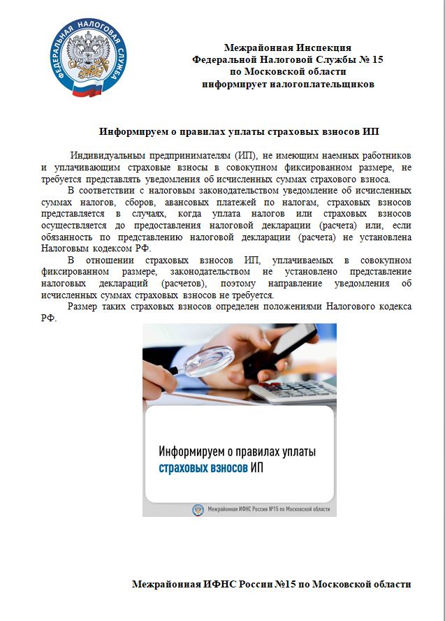 Межрайонная ИФНС России №15 по Московской области информирует