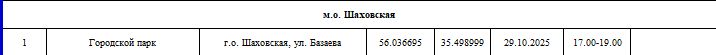 График проведения выездных мероприятий по чипированию, регистрации и вакцинации домашних животных в парках, скверах и общественных местах на территории Московской области на октябрь 2025 года