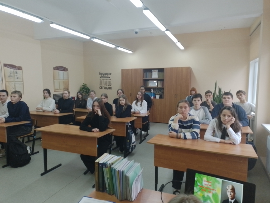 Библиотекарь познакомила присутствующих с биографией и творчеством С. Есенина: где он родился, и чем увлекался в детстве, как учился, о первых шагах в литературе, о бурных годах революции, которые нашли отражение в его творчестве, а также интересные факты о жизни и наследие поэта.
